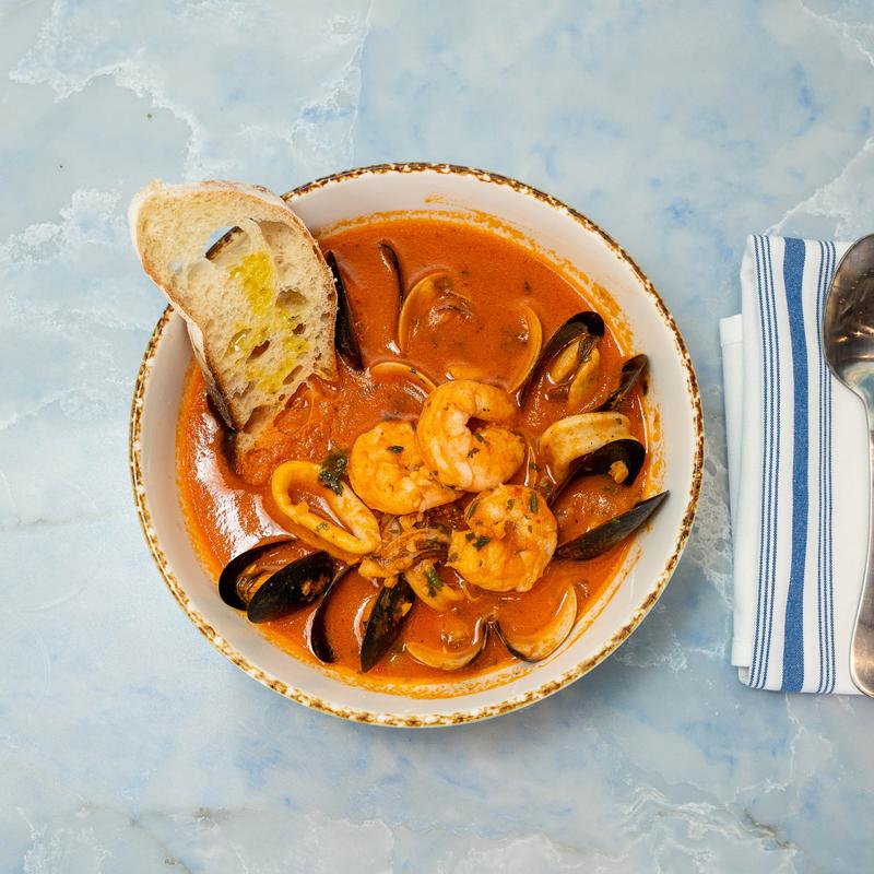 Fish soup, clams, mussels, squid, salmon, tomato sauce | Add Pasta +$6.00